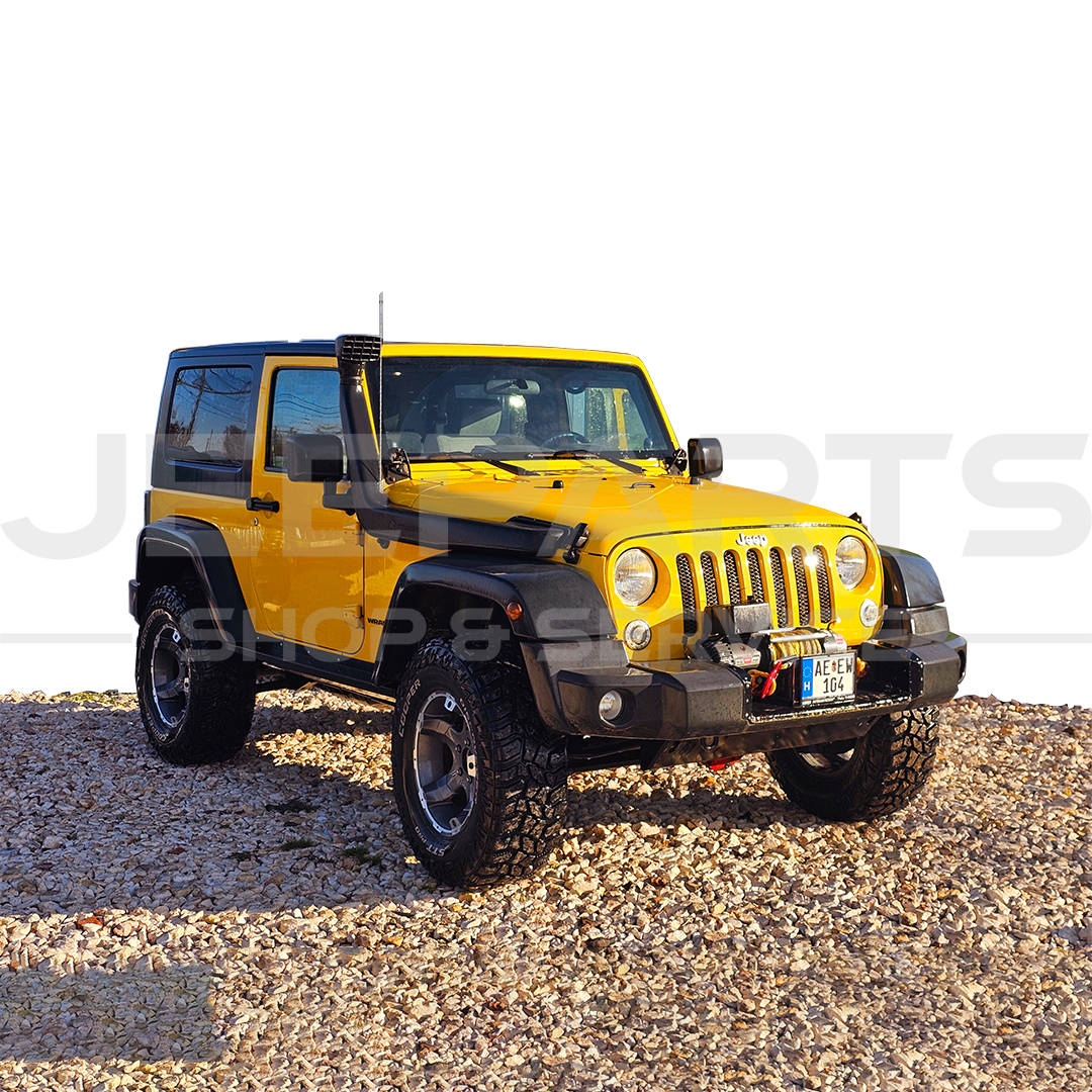 Wrangler JK, profi módon megépítve, 2,5″ TERAFLEX futóműszettel szerelve, Bilstein lengéscsillapítókkal, állítható lengőkarok, panhardok, WARN 9.5 XP csörlő, Black Rock felnikkel (4 db), 285/70R17 Cooper gumikkal, AEV Snorkel, LED munkalámpákkal, TERAFLEX küszöb, ARB difivédőkkel.